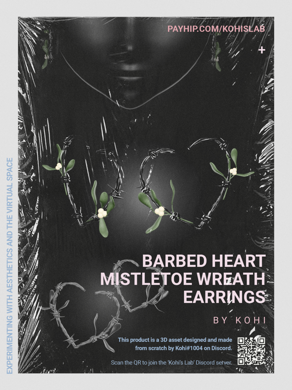 barbed heart mistletoe wreath earrings (free)