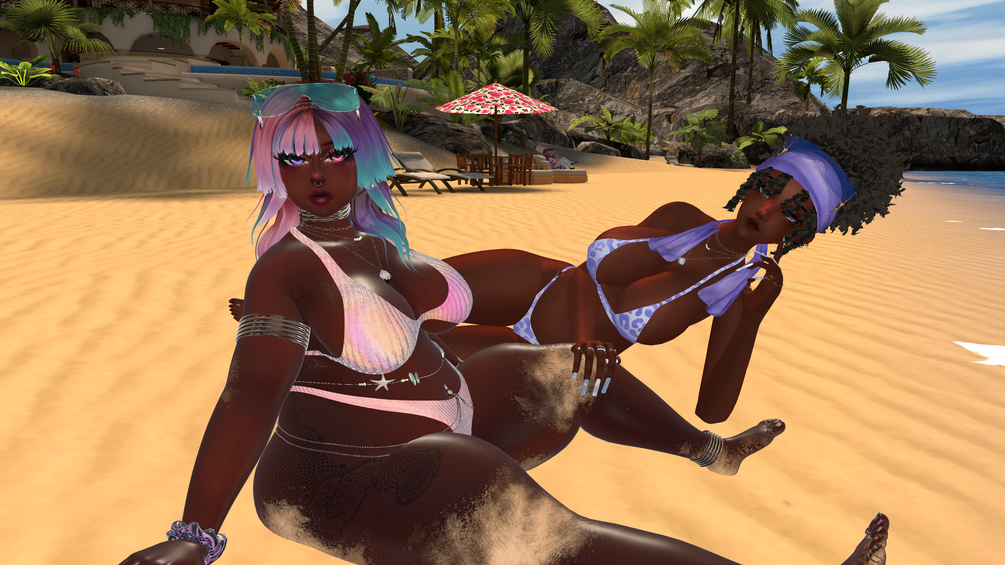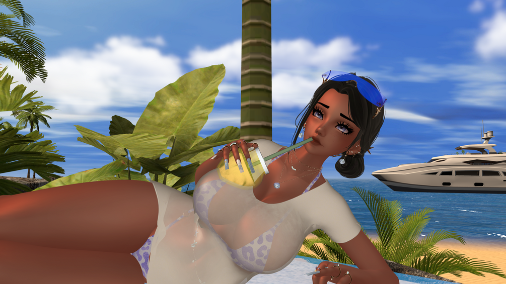 hairstick, earrings, necklaces, rings, nails, waist chain, dress, bikini, t-shirt, shorts, arm floaties, tote bag & fruit slushie: .yuena. (not for reuse/resale unless listed on my store for purchase)