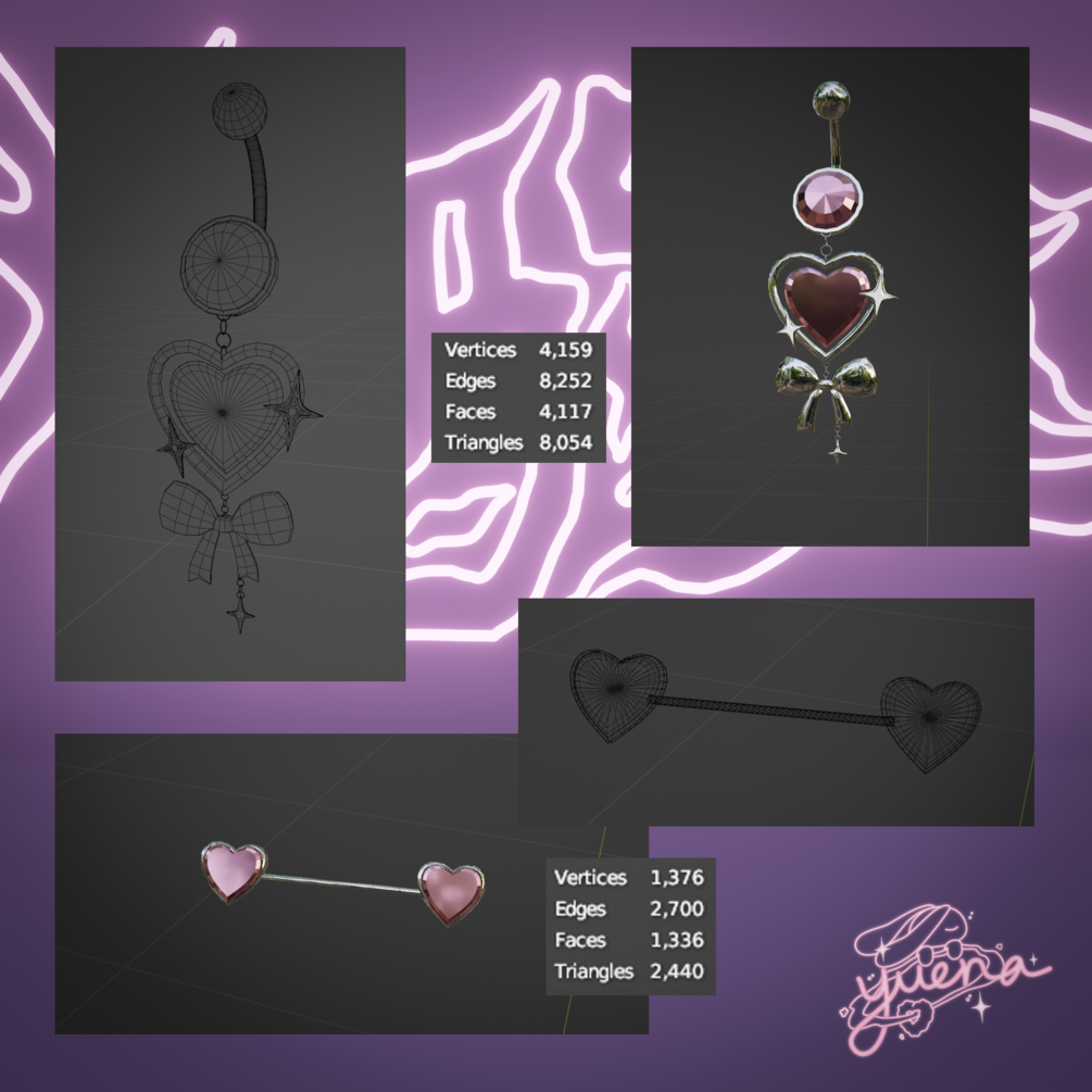 ⁺♡˚·﹙ pretty baby. ﹚ heart belly & nipple piercing set (free in nitro)